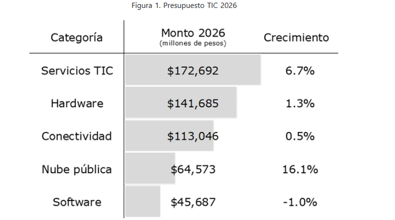 La proyección de crecimiento TIC realizada por Select es de 4.1%, llegando al monto de $547 mil millones de pesos para 2026, apuntalado por mayores presupuestos para migraciones de ERP a la nube, proyectos de ciberseguridad, plataformas de analítica y agentes IA.